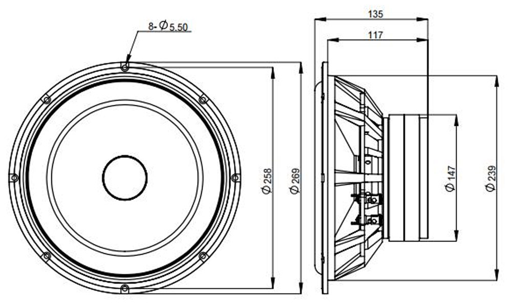 | Baffle cutout dia.: | 230 mm |