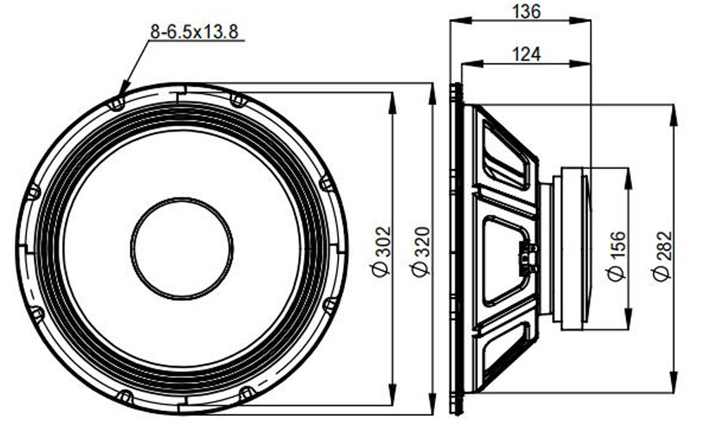 The 121FIND is a high efficiency, (96 dB 1watt/ 1 meter) 12inch woofer with incredibly linear frequency response characteristics, high power handling capability while generating low harmonic distortion artifacts. 121FIND uses lightweight cone which movement is controlled by “M” shaped surround. Pistonic behavior and the long term stabilityIs supported by Nomex spider. The woofer cone is treated to withstand harsh environments and high humidity. The 121FIND was design for its best use in the 2-way applications, where excellent midrange response is required. Speaker provides good low frequency extension and delivers seizable amounts of low frequencies.The metal parts in the speaker are coated and tested to ensure extreme weatherization protection.