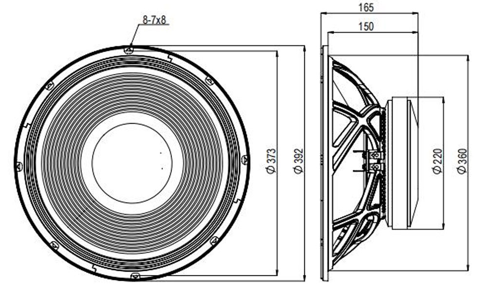 The 15FPM is a high efficiency, (98 dB 1watt / 1 meter) 15-inch woofer with incredibly linear frequency response characteristics. The 15FPM uses a lightweight, but strong, carbon fiber loaded cone assembly along with a high excursion triple roll constant geometry surround. Cone material was specifically developed with 2-way or multi-way application in mind. The 15FPM has extended mid frequency range, providing possibility for cross overs at higher frequencies.Power HandlingAt the core of the 15FPM is it’s voice coil technology featuring a composite Polyimide former material capable of withstanding peak temperatures in excess of 250°C, well beyond the thermal requirements of modern professional audio systems. The coil is wound on the outside of the former. Winding material is aluminum ribbon, material that provides ideal transient response. REDCATT has implemented a silicone spider design to ensure long term Fs memory, consistency and diminish anomalies associated with spider deterioration. The sealed spider works as a air pump and pushes the air trough out motor to increase heat transfer and cooling of the parts.
