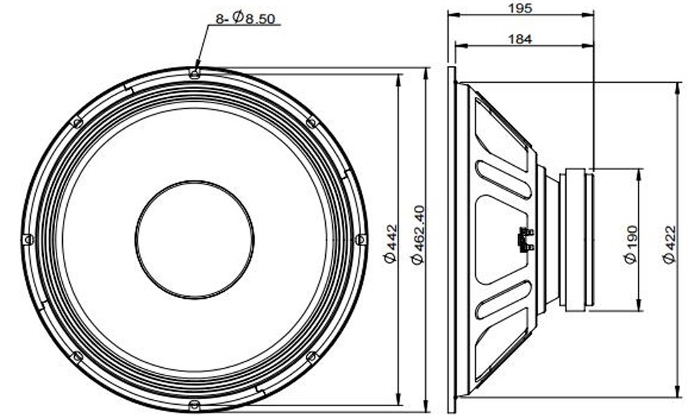 | Baffle cutout dia.: | 422 mm |