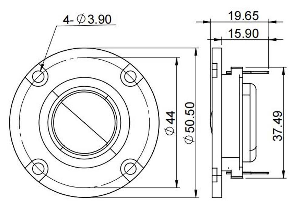 The 20TN tweeter has a lower resonance frequency, making the crossover design a non-complicated task. The tweeter comes with a small waveguide, but based upon request, the tweeter can be also delivered as a “bare” tweeter and assembled with your own waveguide.The best application is in tabletop studio monitors, prosumer products, bookshelf speakers, TV bars, micro line-arrays, etc.