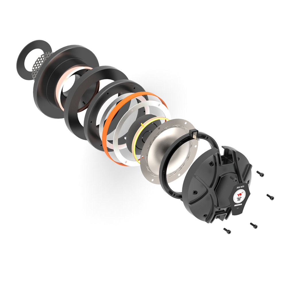 The 201NTi compression driver is based on the design of our successful 200NTi. We have shared the same dome assembly between these two models, while we have packed the driver into a smaller form factor. Not any compromises have been made to the sound character. This driver is here to supports your needs in the applications where the space is limited. The driver’s Neodymium based magnetic circuit provides a robust, high force BL field, delivering precision control of the pure titanium diaphragm assembly, featuring 1.4inch exit throat. Dome Assembly DesignREDCATT has designed the dome and the surround of this compression driver as a single part. The voice coil former is attached to the dome as “L” sandwich.This solution greatly improves the transfer of all frequencies onto the dome, with a good transient response. It also dramatically improves the power handling capability of the driver.