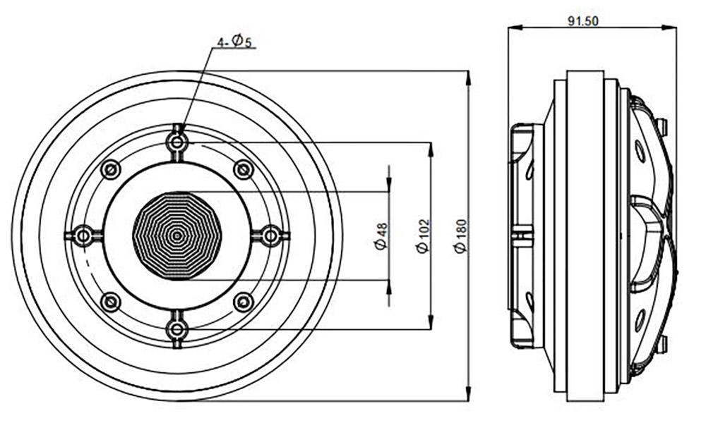 The 200FCD compression driver is a very high performance high frequency device ideal for large professional loudspeaker systems. The driver uses all components that were designed and manufacture with one objective in mind - be the best. The driver’s phase plug is CNC machined from solid aluminum with unbeaten level of precision. The dome is carefully attached to the voice coil with our sandwich joint, improving the transfer of the high frequencies and further improving power handling and reliability of the driver. Diaphragm AssemblyThe driver features a 75mm pure titanium diaphragm. Suspension is formed from Polyimide material. The acoustic output exits through an aluminum, radial 3 slot phase plug and a 2.0 inch throat aperture. Nominal sensitivity is 108.5 dB 1watt / 1 meter.