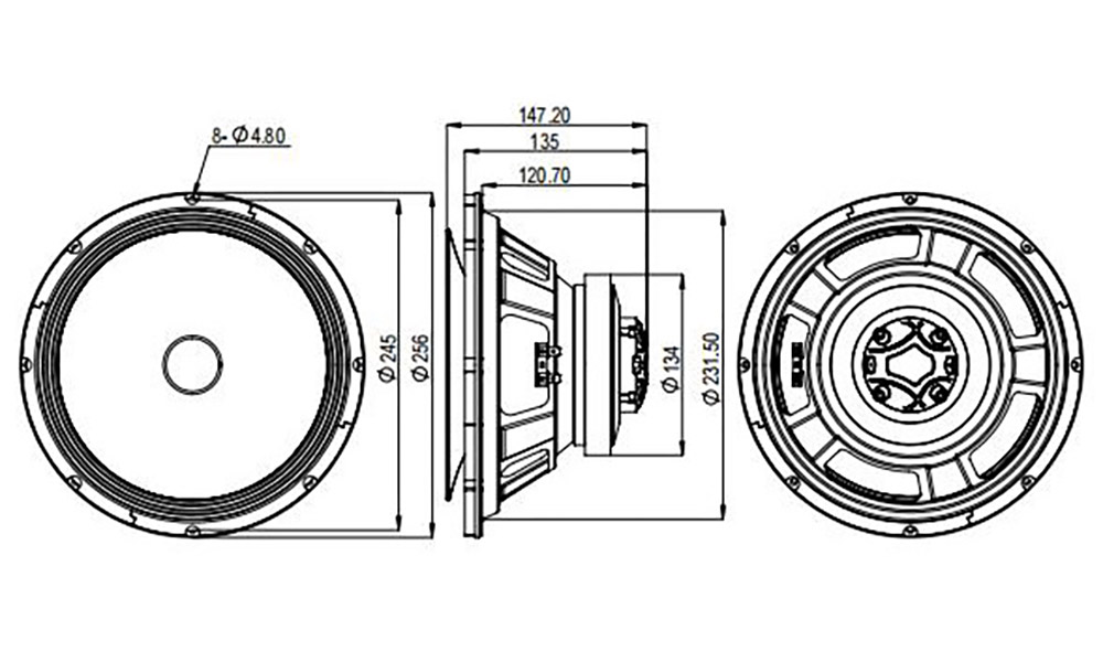| Baffle cutout dia.: | 231.5 mm |
