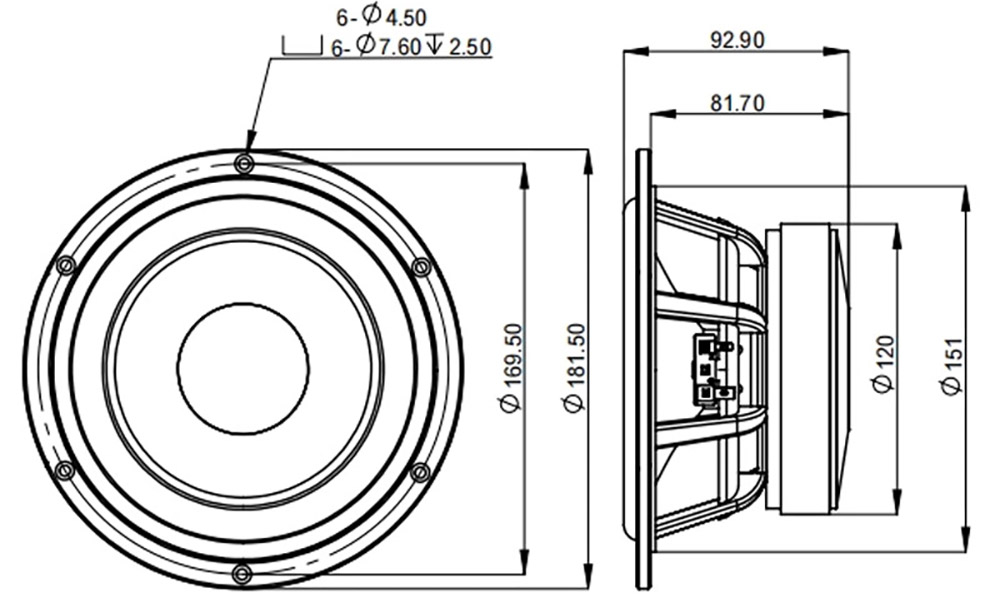 | Baffle cutout dia.: | 151 mm |