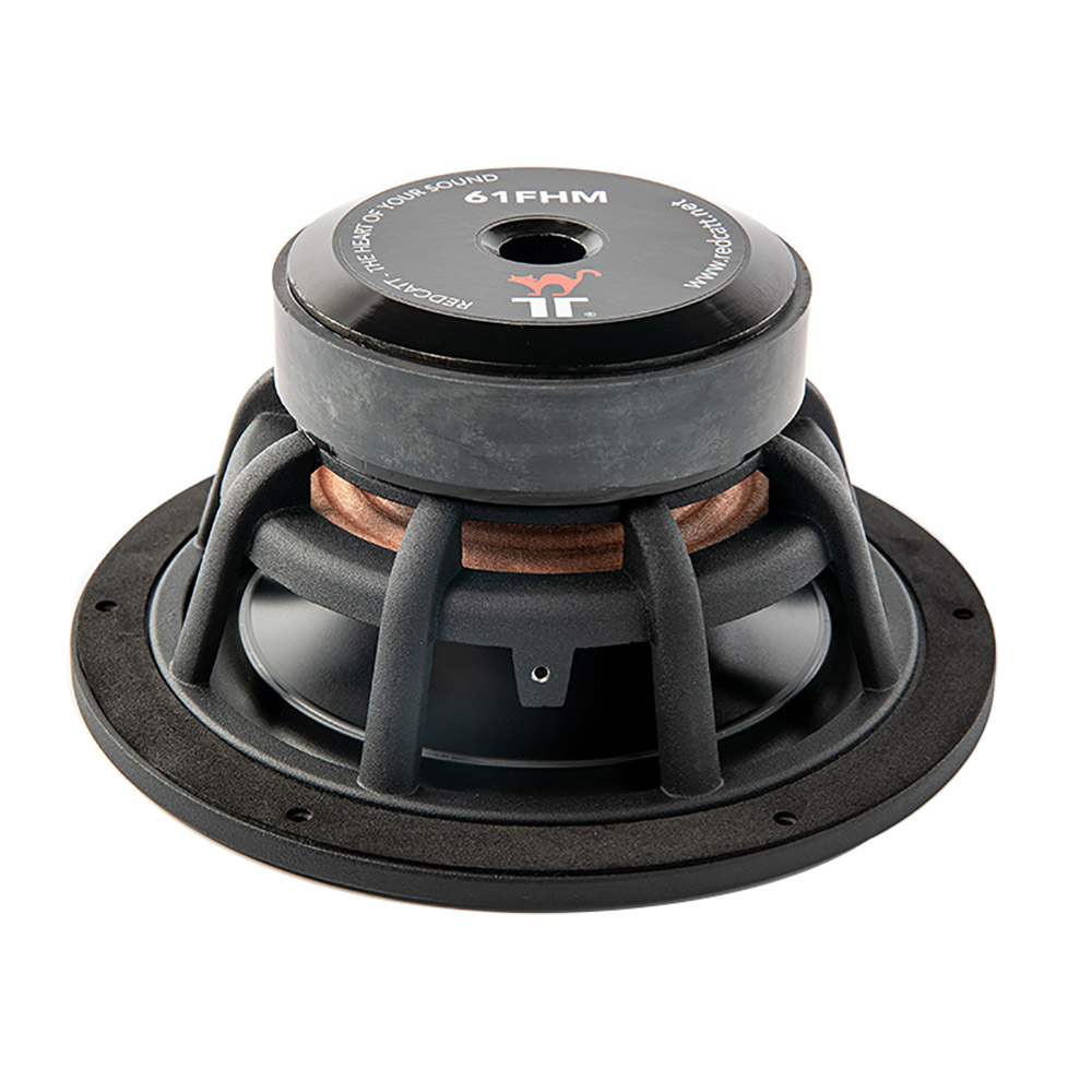 61FHM mid-woofer was designed for outdoor applications, yet it will shine in hi-fi home and studio applications as well. Optimized ferrite based magnetic circuit with good air-venting features ensures long lasting performance. Our engineers have chosen hard-anodized cone with rubber surround for this model. Both of these components are produced with UV stabilizers. Furthermore, REDCATT state of the art adhesives and dispensing techniques ensures waterproof seals in all weather exposed glue joints. Sealing to the exposure can be guaranteed by EVA gaskets or based upon a request by Form In Place Gaskets. The audio system designers can rest assured we have extensively tested this product with UV exposure, salt exposure and waterproofing. The extended mid-frequency response allows the systems to be used with higher resonance frequency HF units. For the best performance in the audio systems, we recommend usage in sealed enclosures. In this model the aluminum cone further improves the mid-frequency response and lowers the harmonic distortion artifacts.