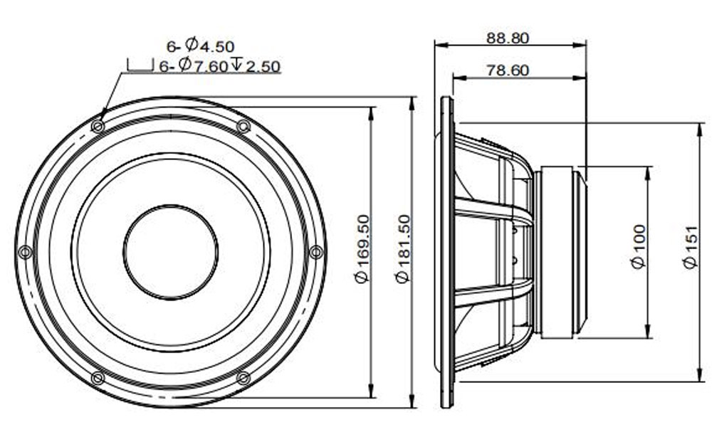 | Baffle cutout dia.: | 151 mm |