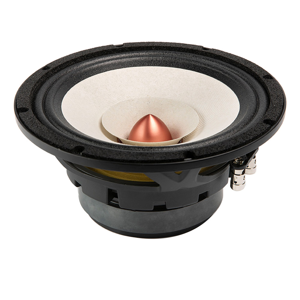 8FR was developed for Hi-Fi applications where single point audio source is required. Our engineers designed the cone to be lightweight, yet strong, using our new paper pulp reinforced by bamboo fibers. The driver sports wizard cone that extends the working range up to 15kHz, paired with bullet style phase plug. Combination of these two key features ensures smooth frequency response and an optimal sound reproduction on and off axes. Magnetic circuit was design to deliver robust B field across the whole range of working frequencies. Additional copper shorting cup further improves the driver behavior in mid-high working region. The aesthetics of this driver were tuned to support modern hi-fi system designs, where the driver can be exposed to the end user. Distinctive colors ensures the driver can be featured as part of the overall industrial design.