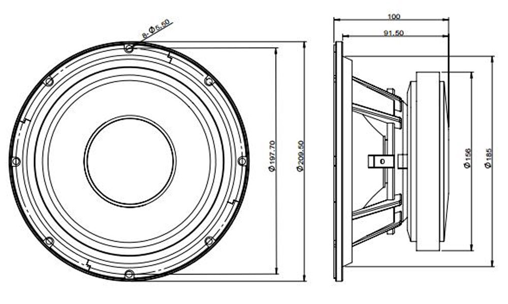 The 8FIND is a high efficiency, (97 dB 1watt / 1 meter) 8-inch mid bass woofer with incredibly linear frequency response characteristics, high power handling capability while generating low harmonic distortion artifacts.The 8FIND uses a lightweight carbon fiber loaded cone assembly along with a precision double roll surround. This combination provides remarkable strength, high efficiency and a excursion linearity of 9.4mm.Magnetic CircuitREDCATT engineers have developed an efficient, ferrite based magnetic circuit, capable of delivering the highest level of performance providing a consistent, high integrity magnetic flux gap, low distortion characteristic. The magnetic circuit design is optimized to generate the minimum amount of flux modulation, providing exceptional stability.