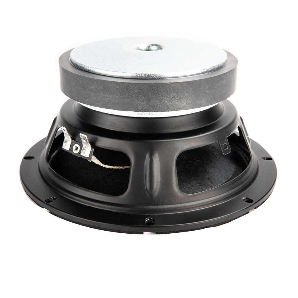 The 81FIND is a high efficiency, (95 dB 1watt / 1 meter) 8-inch woofer with linear frequency response characteristics, good power handling capability while generating low harmonic distortion artifacts. The 81FIND uses a lightweight glass-fiber loaded cone assembly along with a high excursion M-roll surround. This combination provides a lightweight, yet strong,piston.Magnetic CircuitFerrite based magnetic circuit, capable of delivering the good level of performance, providing a consistent, high integrity magnetic flux gap, low distortion characteristic and high-efficiency cooling system. The metal parts are extensively coated to provide the maximum weather protection. This driver has been chosen by many audio engineers for smaller sized, or portable audio products. It has proven its capability over and over again all around the world, many times in challenging applications or environments. 81FIND is proven design that delivers good balance between performance and cost.