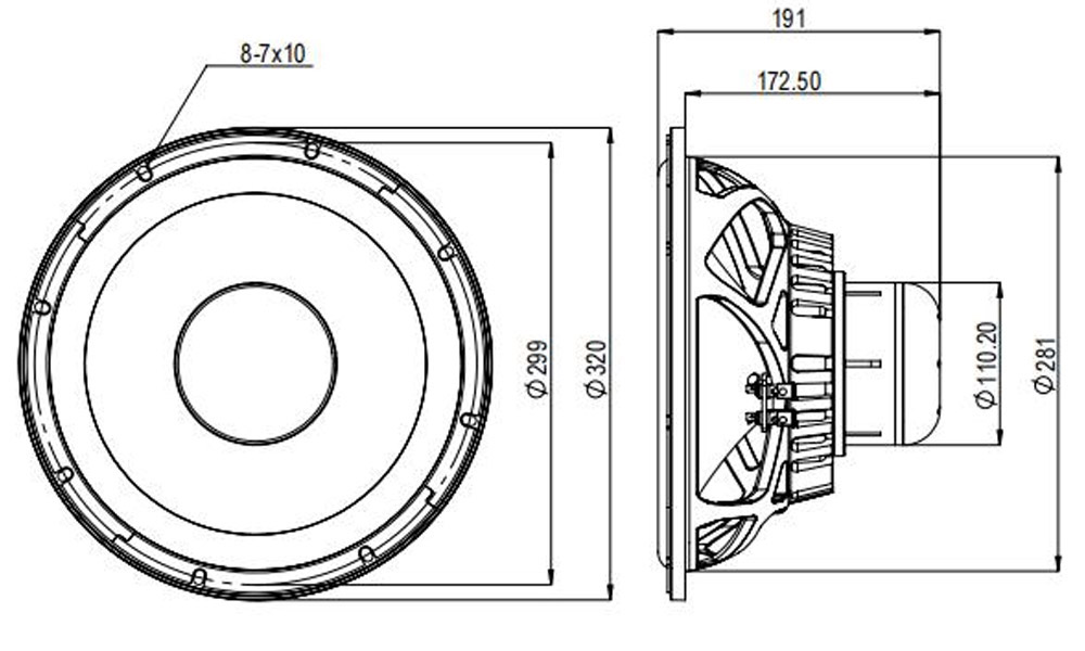 | Baffle cutout dia.: | 281 mm |
