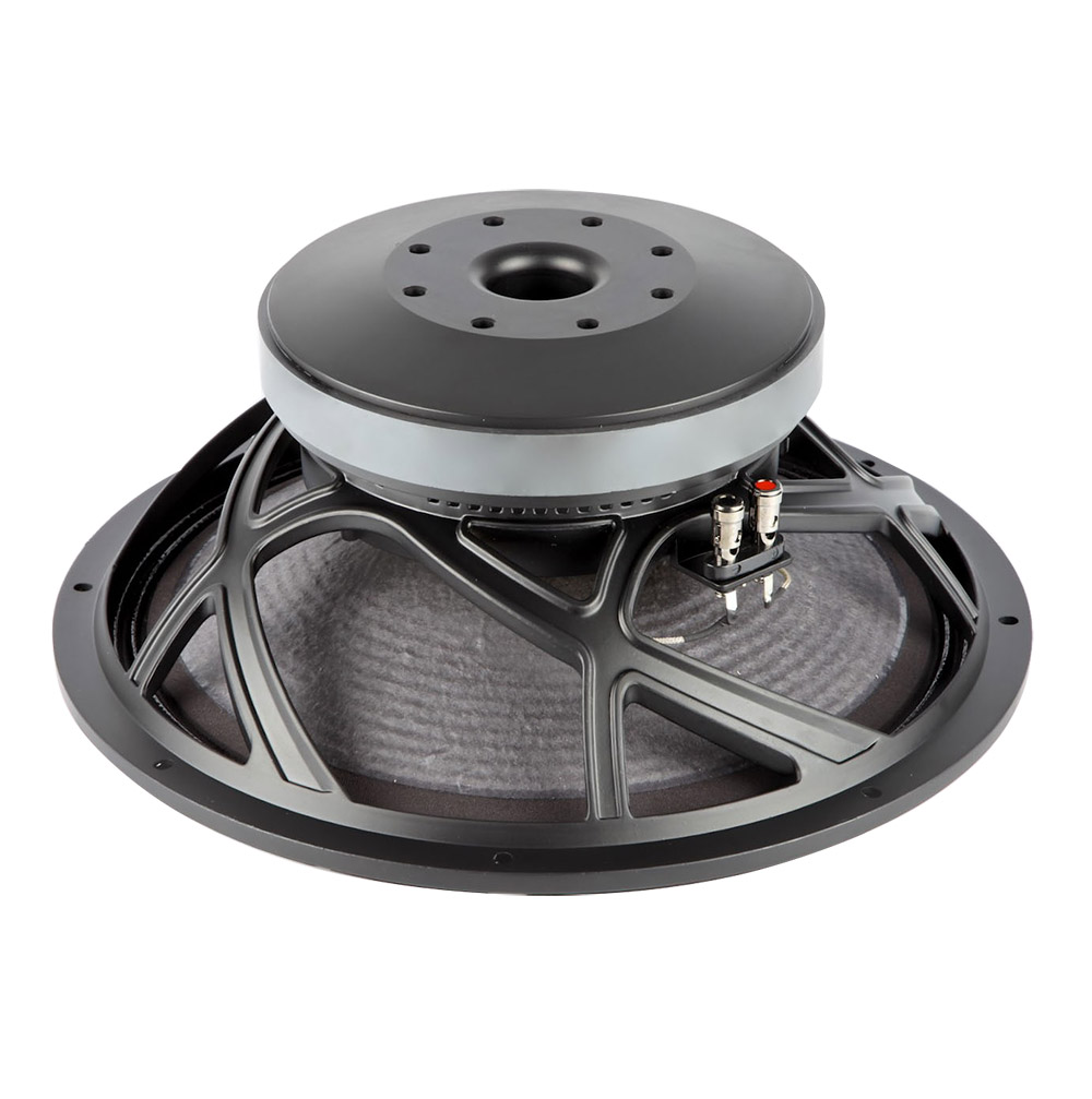 The 15FPM is a high efficiency, (98 dB 1watt / 1 meter) 15-inch woofer with incredibly linear frequency response characteristics. The 15FPM uses a lightweight, but strong, carbon fiber loaded cone assembly along with a high excursion triple roll constant geometry surround. Cone material was specifically developed with 2-way or multi-way application in mind. The 15FPM has extended mid frequency range, providing possibility for cross overs at higher frequencies.Power HandlingAt the core of the 15FPM is it’s voice coil technology featuring a composite Polyimide former material capable of withstanding peak temperatures in excess of 250°C, well beyond the thermal requirements of modern professional audio systems. The coil is wound on the outside of the former. Winding material is aluminum ribbon, material that provides ideal transient response. REDCATT has implemented a silicone spider design to ensure long term Fs memory, consistency and diminish anomalies associated with spider deterioration. The sealed spider works as a air pump and pushes the air trough out motor to increase heat transfer and cooling of the parts.