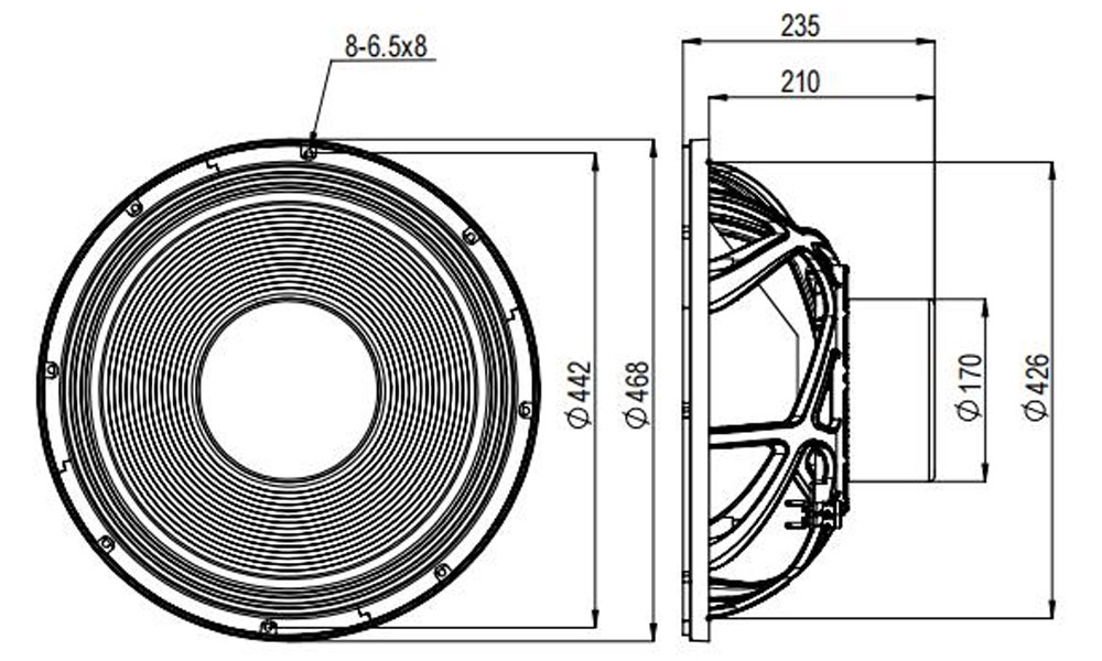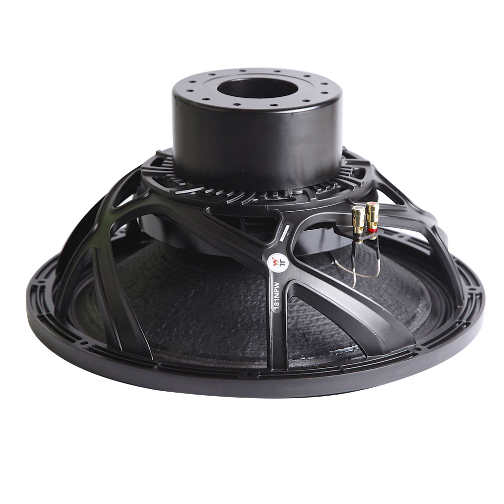 The 181NPW is a high efficiency, (95 dB 1watt / 1 meter) 18-inch woofer with incredibly linear frequency response characteristics, extreme high power handling capability while generating low harmonic distortion artifacts. The 181NPW uses a lightweight carbon fiber loaded cone assembly along with a high excursion triple roll constant geometry surround.This combination provides remarkable strength, high efficiency and a peak to peak maximum excursion of 30.5mm. Power HandlingAt the core of the 181NPW is it’s voice coil technology featuring a composite Polyimide former material capable of withstanding peak temperatures in excess of 350C, well beyond the thermal requirements of modern professional audio systems. The 181NPW delivers incredible performance. REDCATT has implemented a triple layer/silicone spider design to ensure long term shape memory, consistency and diminish anomalies associated with spider deterioration.