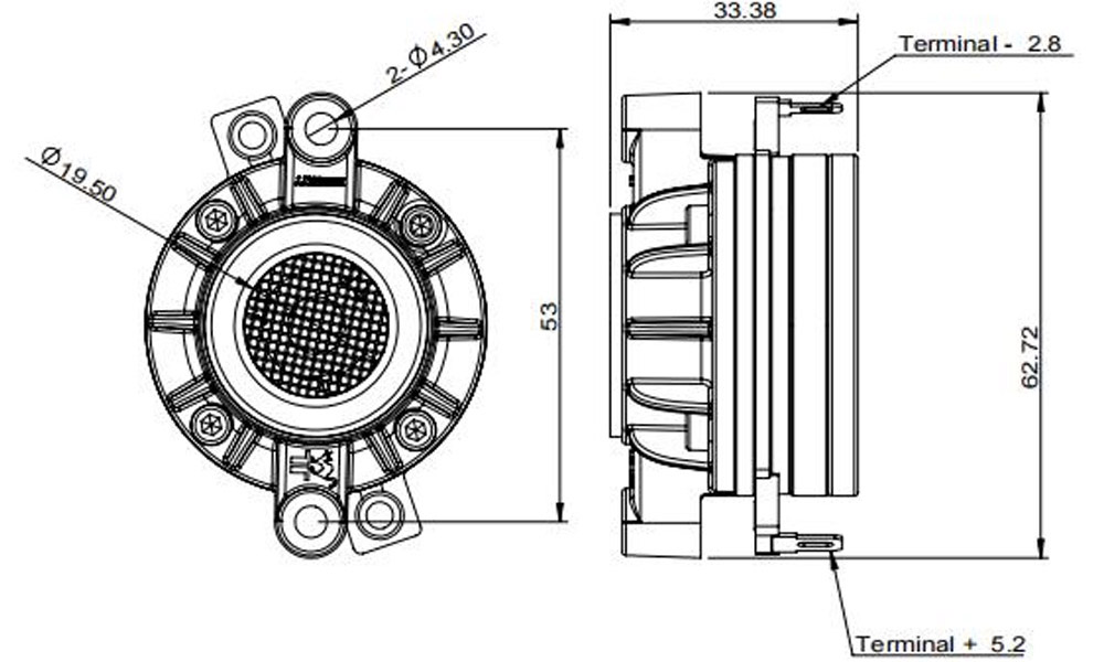 Introducing the cutting-edge 075NCD compression driver, an exceptional high-performance, high-frequency marvel tailored for professional loudspeaker systems, high-output hi-fi setups, and aftermarket car audio installations. Boasting a neodymium-based magnetic circuit, this driver generates a resilient, high-force BL field, guaranteeing precise control over the Polyimide diaphragm assembly. Delivering unrivaled frequency response and robust power handling capabilities, all through a sleek 0.75-inch exit throat.Diaphragm Design:Featuring a 19mm Polyimide diaphragm meticulously crafted as a single piece, alongside a Polyimide suspension that ensures superior durability. The unparalleled acoustic output is channeled through a bullet phase plug coupled with a 0.75-inch throat aperture.