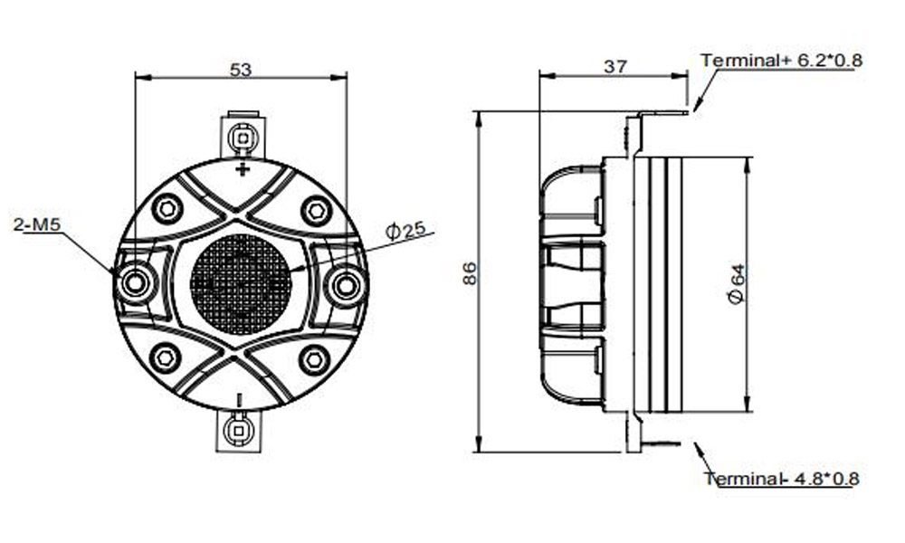 The 101NCD compact size compression driver is a very high performance, high frequency device ideal for compact professional loudspeaker systems. The driver neodymium based magnetic circuit provides precision control over Polyamide diaphragm assembly in very compact package. The unit delivers extended frequency response and high power handling throughout 1.0 inch exit throat. The diaphragm is carefully attached to a high temperature Nomex voice coil former that can withstand the long term power handling characteristic typically seen in professional audio applications. REDCATT uses state of the art adhesives in all assembly steps. Our voice coil to dome bonding is unique process,developed to greatly improve the power handling capabilities. REDCATT unique and precise adhesives dispensing, combined with our in-house developed dome treatments are further improving the long term reliability of this product.