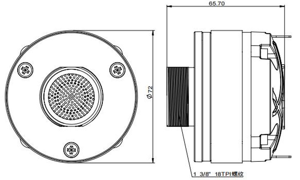 The 141FCD compression driver is a high performance high frequency device ideal for professional loudspeaker systems. It’s core is designed based on our very 140FCD model. In fact the dome assembly is shared between these two models. The driver’s ferrite based magnetic circuit was modified to fit applications with a limited space and lower budget.Furthermore, we have added mounting adapter with 1 3/8” 18TPI thread to easy and fast mounting onto the horn throats that incorporate this thread. Diaphragm AssemblyThe driver features a 36mm Polyimide diaphragm formed as single piece with Polyimide suspension. The suspension has designed and FEM optimized venting features to lover the harmonic distortion. The dome is carefully attached to a high temperature Nomex voice coil former that withstands the long term power characteristics typically seen in professional applications. The acoustic output exits through a radial phase plug and a 1.0 inch throat aperture. Nominal sensitivity is 105 dB 1watt / 1 meter.