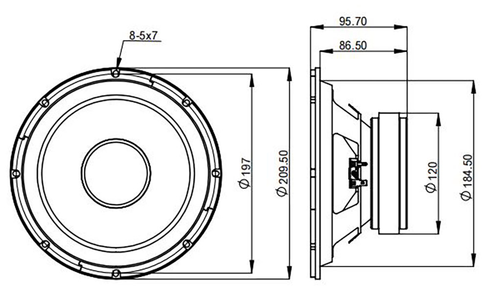 8FHW was designed as mid-woofer, with extended frequency response to low frequencies, as well as good extension into the mid-frequencies. All parts are intensively treated for outdoor usage, cone, surround material are with UV stabilizers. The used adhesives make sure the driver is waterproof. The cone utilizes polypropylene material and rubber surround. This combination sports sizable amounts of low frequencies and good behavior in the higher mid-frequencies.
