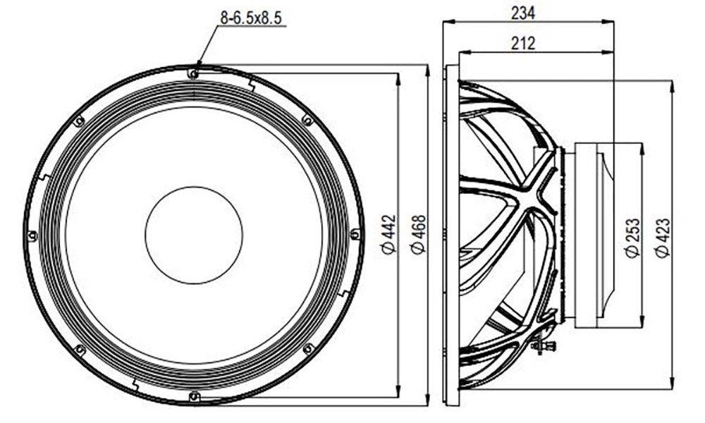 | Baffle cutout dia.: | 423 mm |