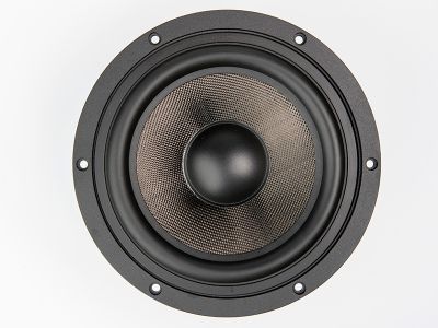 The 6FHM is a high efficiency, (89 dB 1watt / 1 meter) 6-inch mid-woofer with incredibly linear frequency response characteristics and ultra low harmonic distortion artifacts. The 6FHM uses a lightweight 1k carbon fiber material, assembled on both sides of Nomex honey-comb core. This unique cone provides the ideal weight to strength ratio. The rubber surround has been FEM modeled and optimized. The honeycomb cone with high-end 1k carbon fiber material provides remarkable strength, while pushing the cone break-up modes to high frequencies, significantly extending the working range of the speaker.