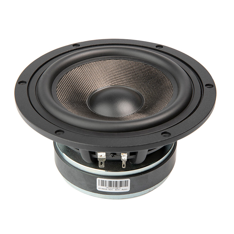 The 6FHM is a high efficiency, (89 dB 1watt / 1 meter) 6-inch mid-woofer with incredibly linear frequency response characteristics and ultra low harmonic distortion artifacts. The 6FHM uses a lightweight 1k carbon fiber material, assembled on both sides of Nomex honey-comb core. This unique cone provides the ideal weight to strength ratio. The rubber surround has been FEM modeled and optimized. The honeycomb cone with high-end 1k carbon fiber material provides remarkable strength, while pushing the cone break-up modes to high frequencies, significantly extending the working range of the speaker.The coneThe 6FHM cone is made using 1k carbon fiber honey-comb, placed from both sides of Nomex core, while the dustcap is made off hard-anodization reinforced aluminum. The dustcap shape and the hard anodizing are further improving the mid to high frequency behavior.