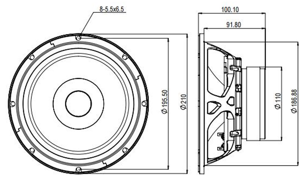 | Baffle cutout dia.: | 186.88 mm |