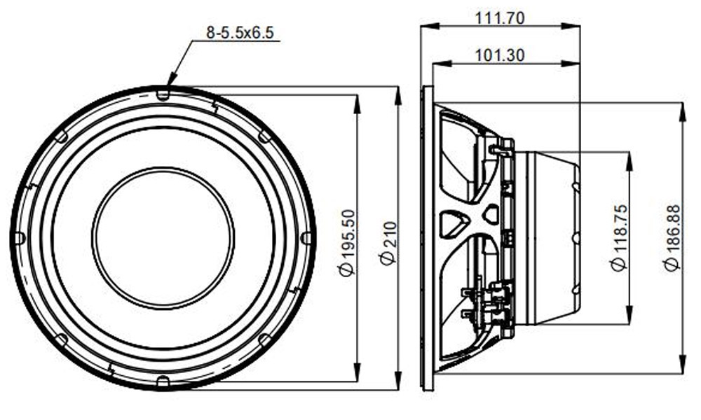 The 81NPM was designed for good reproduction of voice. With an extended low-frequency response, this mid-woofer is highly suitable for two-way and multi-way systems. It’s high power handling capabilities extend the ideal usage as a mid-range driver in line-array systems. The 81NPM uses a lightweight half-pressed paper cone reinforced by our proprietary cone treatment, which also works as weatherization protection. The used high-quality components ensure long-lasting performance even in high powered applications. The chosen material combination provides remarkable strength, high efficiency and sustained output under extreme conditions. Power HandlingThe voice coil sports Kapton former material capable of withstanding peak temperatures above 300°C, well beyond the thermal requirements of modern audio systems. Former strength provides the ideal transfer of power between the voice coil and the cone assembly and assists in reducing distortion artifacts. By combining this material with state of the art adhesives and our winding voice coil technology, the 81NPM delivers incredibly high performance.