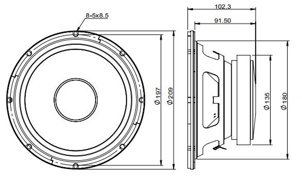 The 81FIND is a high efficiency, (95 dB 1watt / 1 meter) 8-inch woofer with linear frequency response characteristics, good power handling capability while generating low harmonic distortion artifacts. The 81FIND uses a lightweight glass-fiber loaded cone assembly along with a high excursion M-roll surround. This combination provides a lightweight, yet strong,piston.Magnetic CircuitFerrite based magnetic circuit, capable of delivering the good level of performance, providing a consistent, high integrity magnetic flux gap, low distortion characteristic and high-efficiency cooling system. The metal parts are extensively coated to provide the maximum weather protection. This driver has been chosen by many audio engineers for smaller sized, or portable audio products. It has proven its capability over and over again all around the world, many times in challenging applications or environments. 81FIND is proven design that delivers good balance between performance and cost.